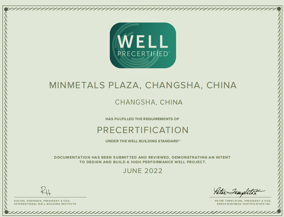长沙五矿广场项目获WELL金级预认证